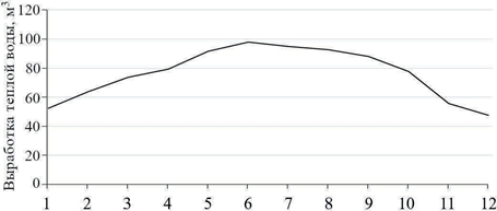 Энергопроизводительность водонагревательной установки VSF-1 при на- греве воды до 44 °С составляет 914.52 м3/год, средняя выработка водонагрева- теля за месяц равна 76.21 м3.