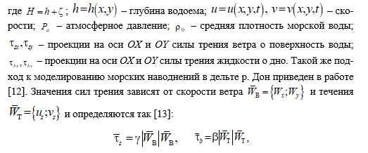 Расчеты колебаний уровня в Азовском море основываются на решении системы уравнений для длинных волн в однородной несжимаемой жидкости в поле силы Кориолиса с учетом атмосферного давления, как это сделано в работе [11]: